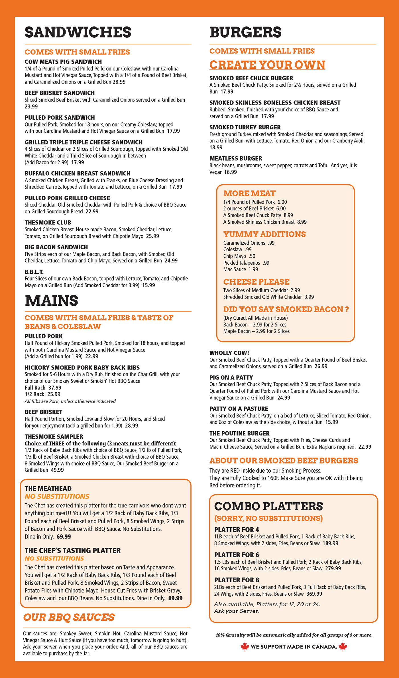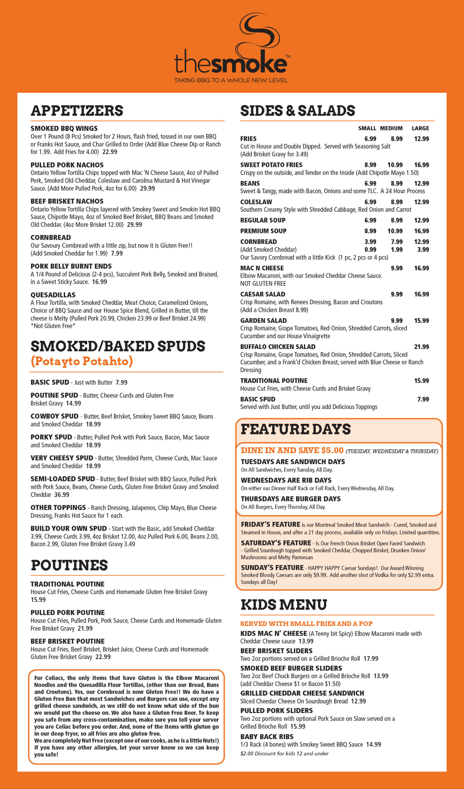 Features, Specials, Menu Items and Pricing subject to change without notice. Please note that last orders are taken one hour prior to closing.